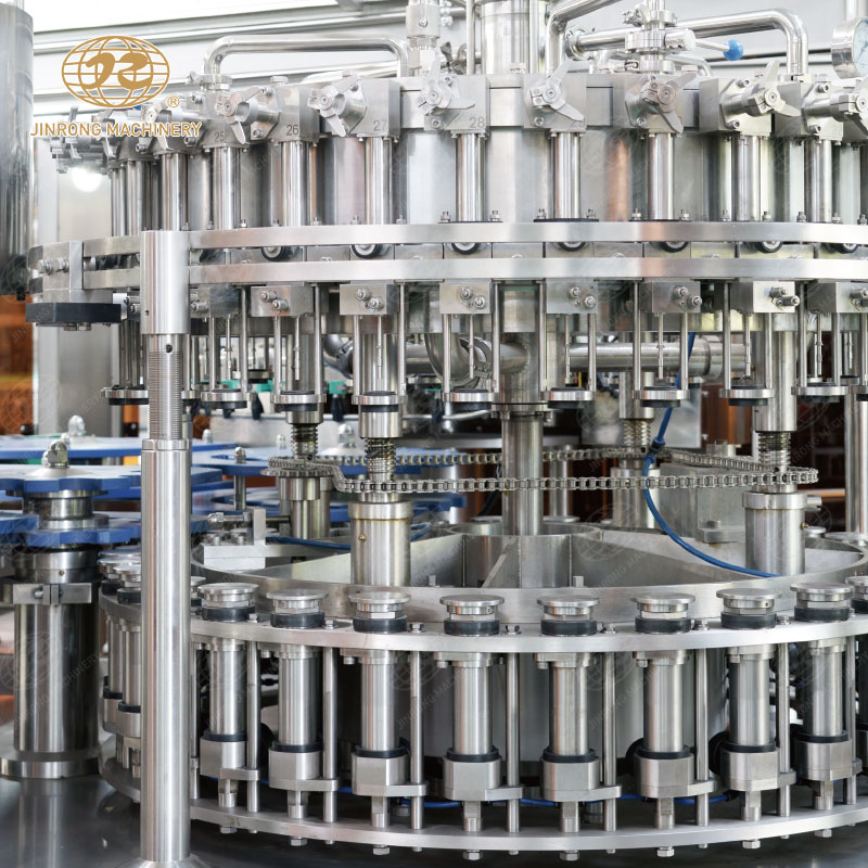 三合一含汽飲料灌裝機(jī)集清洗、灌裝、旋蓋于一體的灌裝設(shè)備,成套飲料生產(chǎn)線(xiàn)適合汽水、可樂(lè)、蘇打水、氣泡水等。玻璃瓶含汽飲料灌裝機(jī)組內(nèi)部一次完成洗瓶、灌裝、封蓋三道工序,瓶子磨損小、傳動(dòng)準(zhǔn)確平穩(wěn)、瓶型更換便捷。