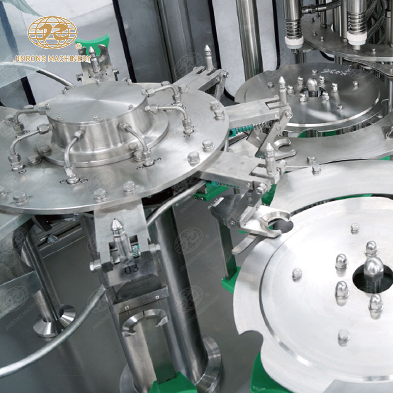 1.由理蓋器整理好的蓋子擰到已灌裝好產品的瓶子上,并由輸送鏈送至后道工序。